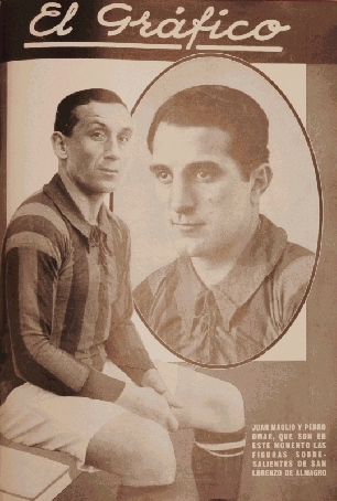 Dos goles famosos: A Maglio siempre lo han salvado los goles. El día en que se pasó la hora y media sin pellizcar el globo, al final ha sido él quien mandó el ruiseñor a la jaula. Recuérdese aquel partido contra el Ferencvaros. Se había oros mostrado empeñoso como siempre pero sin alcanzar a jugar bien. En una de esas, cuando ya el match estaba por terminar, ¡zas! un pepino. Y antes que la gente hubiera terminado de aplaudir ya había mandado el otro. Así ganamos dos a cero. Pero hay algo más interesante: cada vez que Maglio ha jugado en Montevideo, siempre ha hecho un gol. En el último por la Newton, casi sobre la hora le mandó a Mazali uno de esos tablonazos que hacen época. Esa característica tan curiosa de mamar un gol en cada partido jugado en Montevideo, constituye un homenaje a Artigas. Como Maglio vive en la calle General Artigas, considera justo rendir ese tributo al prócer uruguayo, tanto para que éste se la pille que Juan se apunta con los pepinos porque vive en su calle. (El Grafico). |