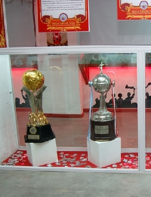 Una de las principales atracciones del museo es la presencia de los cinco trofeos que el club ha ganado de manera profesional a lo largo de toda su historia, entre los cuales se destaca la Copa Libertadores de América conquistada en Paraguay en el año 1985. También se encuentra allí el trofeo conquistado en el Clausura del año 2010, el último obtenido hasta la fecha. Se exhiben todos los conjuntos de indumentaria de la institución desde 1910 hasta la actualidad.
