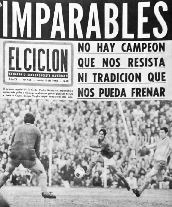 Perfumo intenta detener el remate de Pedro González que será el primer gol